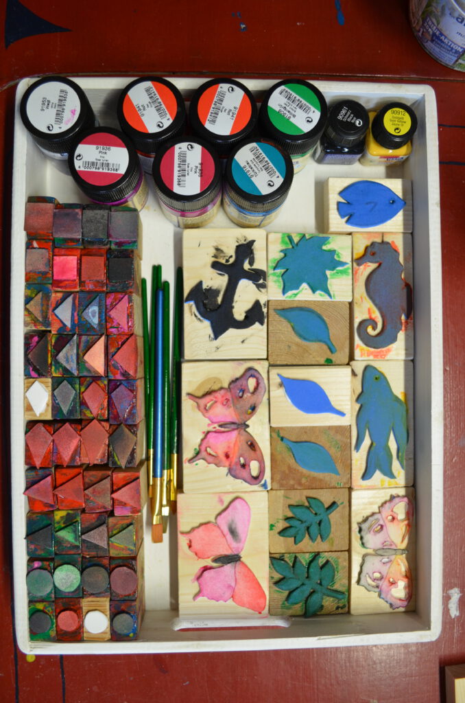 Stofffarben, Stoffstifte, Stempel und co. sind in großer Auswahl vorhanden.